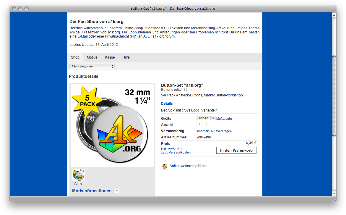 Aktive Mitarbeit leiste ich seit der Überarbeitung des Fanshops von a1k.org im Jahre 2007.