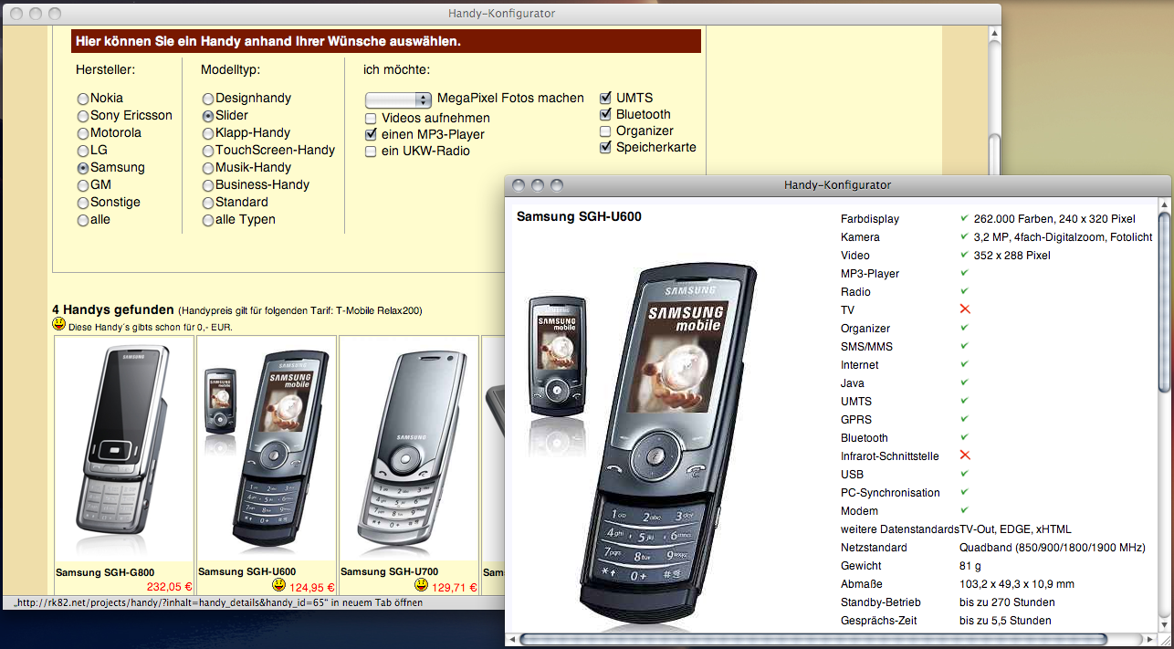 Webservice Handy-Konfigurator (2008)