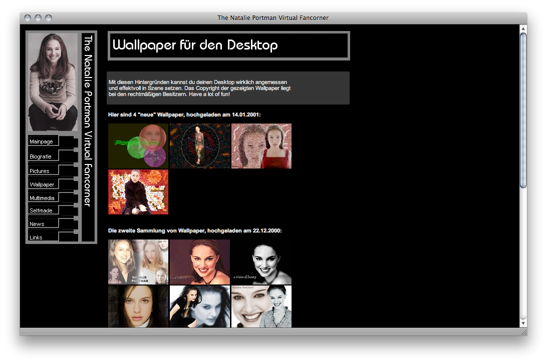 bastelte ich an diversen größeren und kleineren Webseiten. Eines der ersten Schauplätze war The Natalie Portman