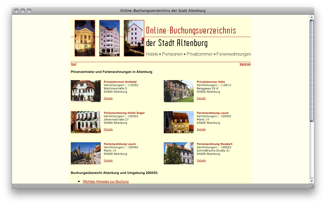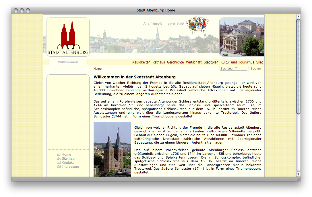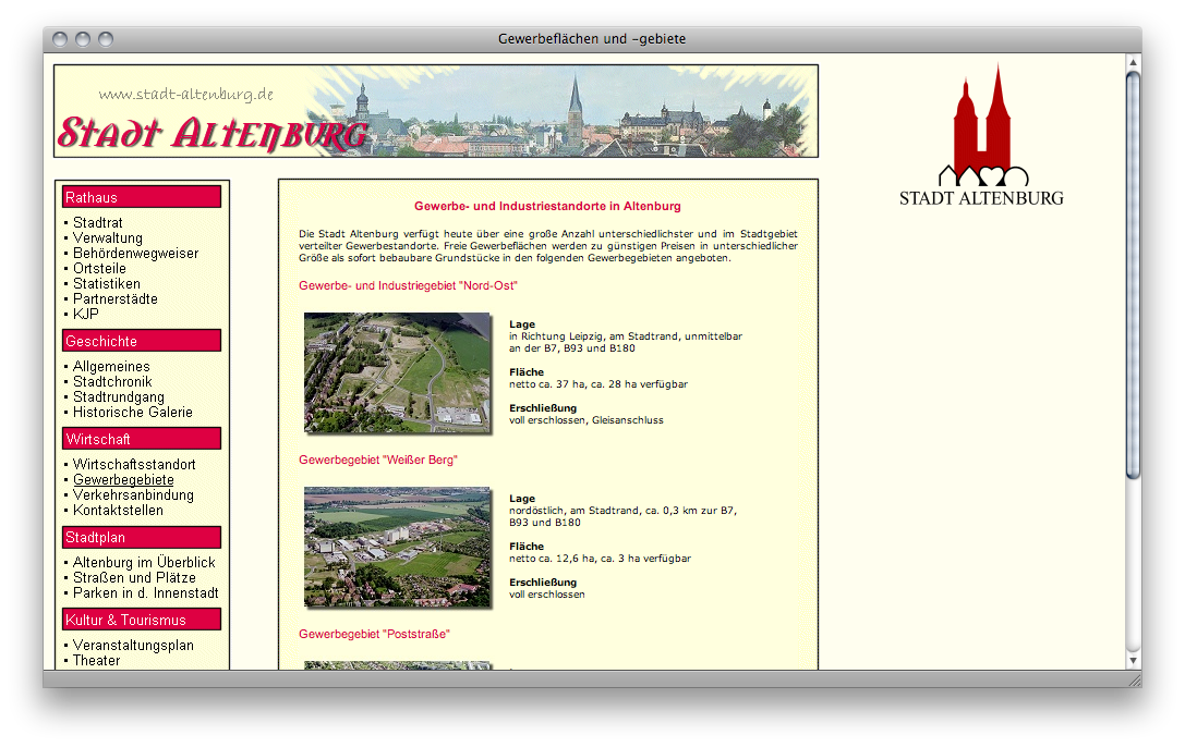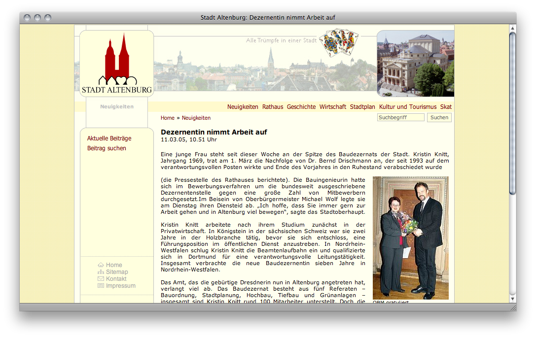 Bereits während meiner Ausbildung als Assistent für Informatik wurde mir auferlegt, die Inhalte der Homepage der Stadt Altenburg, damals eine