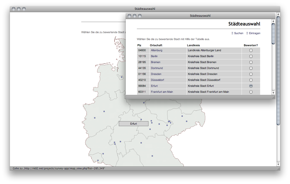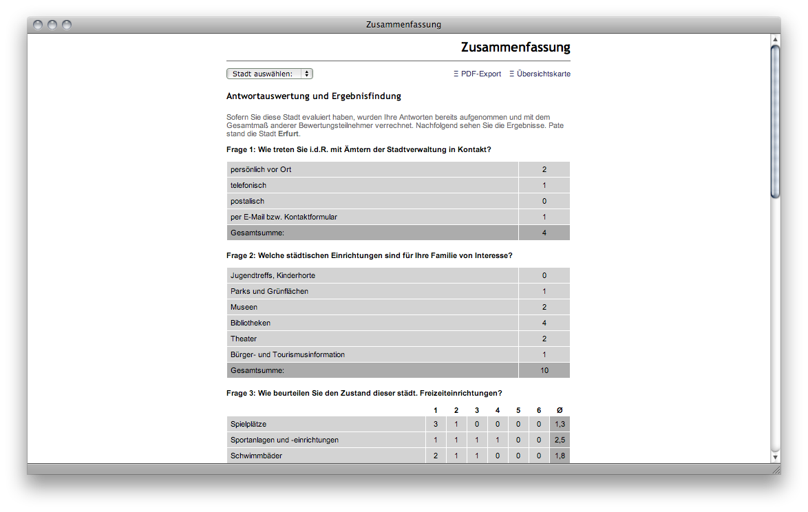 ein webbasiertes Umfragesystem, das darauf ausgerichtet ist, deutsche Städte anhand eines universellen Befragungsmechanismus’