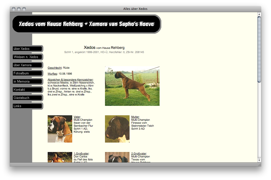 Zuchterfolge zweier Boxer, 2001 erstellt und bis 2002 betreut.